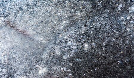Close up of frost pattern. Colored Ice crystals or cold winter background. Abstract frosty pattern on glass, background texture