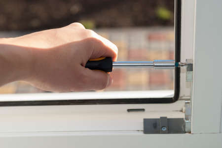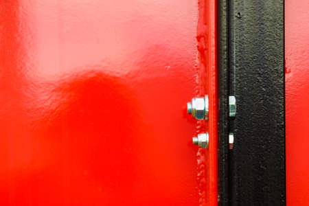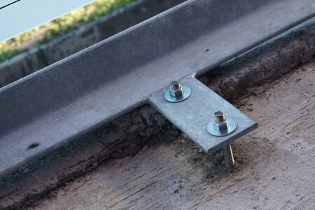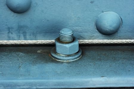 Construction machines concept. Detailed closeup of screw and bolts on indrustrial machinery