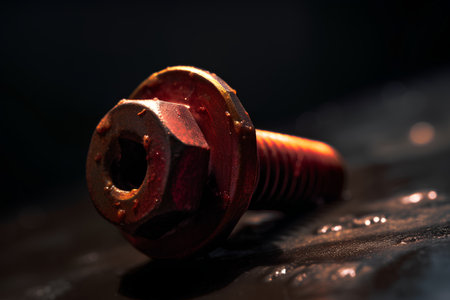 Close-up of a rusty bolt on a dark background. Shallow depth of field.