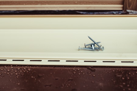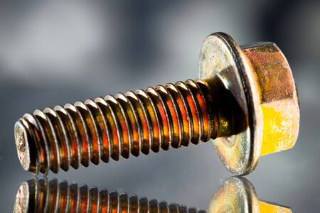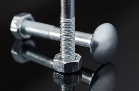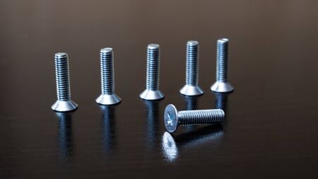 Wood screws set on a background. Postcard concept for men. Mirror reflection