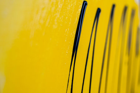 Vibrant yellow and dark black stripes carve through textured asphalt, creating a bold visual contrast that guides drivers and adds energy to urban streets.