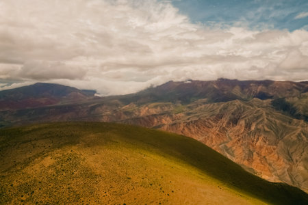 Stunning aerial view of mountainous landscape in the Andes with dramatic clouds during daylight