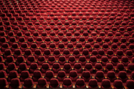 Theater hall with rows of red velvet seats