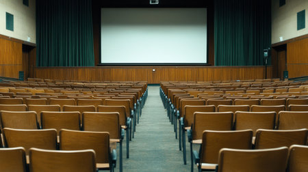 Empty cinema hall with seats. Movie theatre --chaos 50 --ar 3:2 --style raw --stylize 750 Job ID: dae4d821-b04a-4722-a007-082333055ea0
