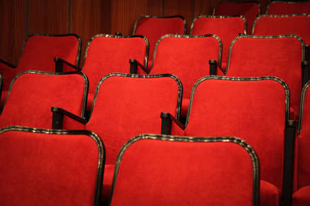 Red armchairs of old theater as conceptual background.