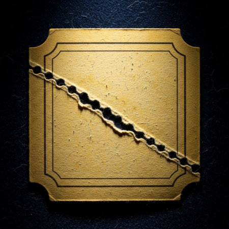 A tightly framed, square composition providing an extreme close-up of a generic paper ticket stub fr