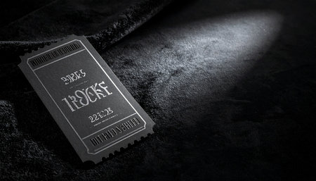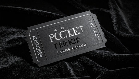 A single vintage ticket rests on a bed of plush black velvet, its monochrome design hinting at an exclusive, mysterious event.