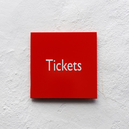 A single, empty vintage-style ticket with a red border rests diagonally on a pale pink surface. The ticket is ready for customization.