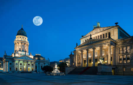 Gendarmenmarkt square in Berlin under a harvest Moon