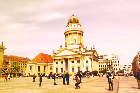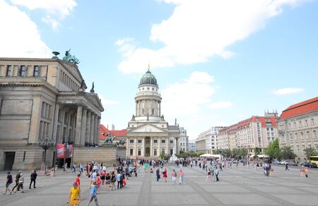 Berlin Germany - June 7, 2019: People visit Gendarmenmarkt square plaza Berlin Germany