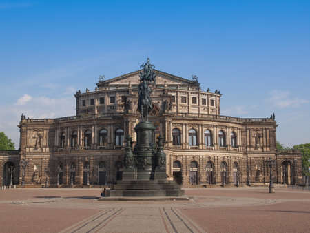 View of the Semperoper theatre in the old town of Dresden, Germany.