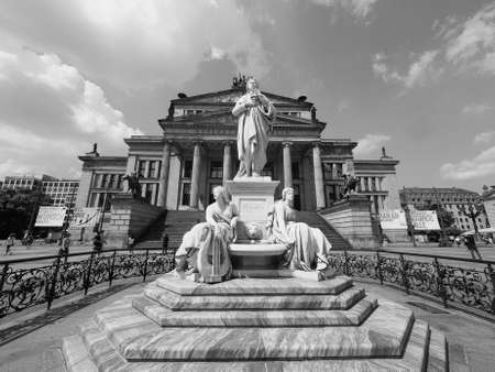BERLIN, GERMANY - CIRCA JUNE 2016: Konzerthaus Berlin concert hall on the Gendarmenmarkt square in central Mitte district in black and white