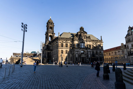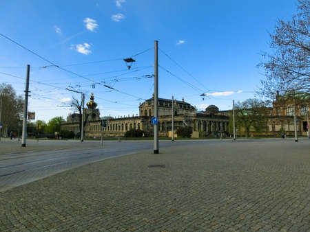 Dresden, Germany - April 18, 2022: View of the Famous Zwinger from the Sophienstrasse