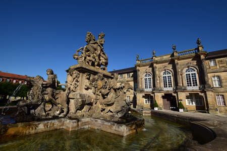 Leipzig, Germany - October 2018: The Mende Fountain (Mendebrunnen), ornamental fountain located near the Gewandhaus (Concert Hall) and Leipzig University at Augustusplatz in city center of Leipzig, Germany