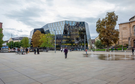 Generative AI : City hall and modern buildings at town square stuttgart germany