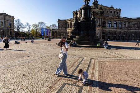 Dresden, Germany April 5, 2025. Tourists on the streets of the ancient German city of Dresden