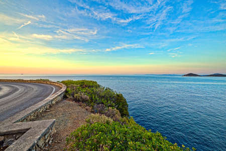 Serene coastal road at sunset. Dramatic view.