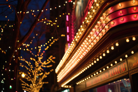 Illuminated Theater Marquee Sign Enlivens The Evening, Eliciting Joyful Celebration Of The Arts