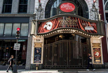 Boston, MA USA 06.09.2017 Front of the Opera House Theater iconic neon sign dominates Washington Street Theater District