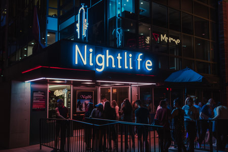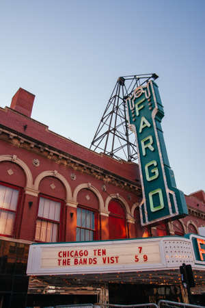 Bright lights advertise a popular place for shows and concerts in Chicago, Illinois