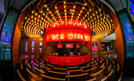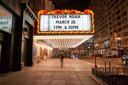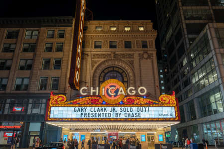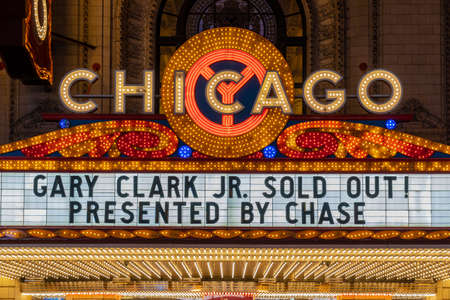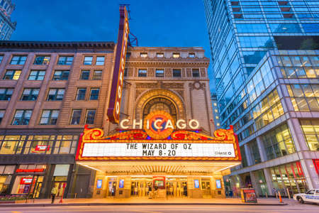 Chicago, USA - August 13 2015: Chicago theater with shows about to start on an early summer's evening