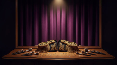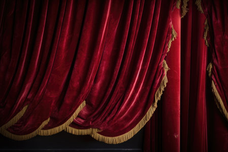 detail shot of velvet curtain fringe and stage ropes, created with generative ai
