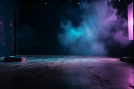an empty stage bathed in atmospheric light, creating a mesmerizing bokeh effect, perfect for creative projects.