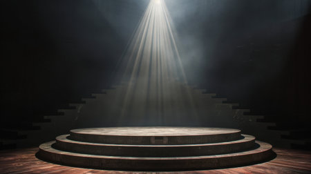 an empty stage bathed in atmospheric light, creating a mesmerizing bokeh effect, perfect for creative projects.