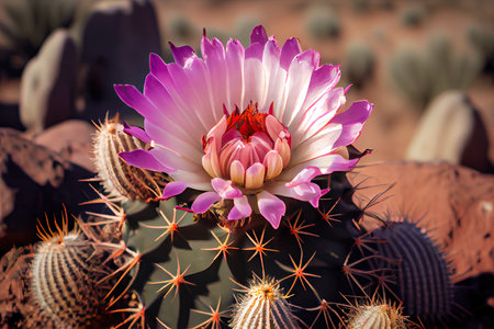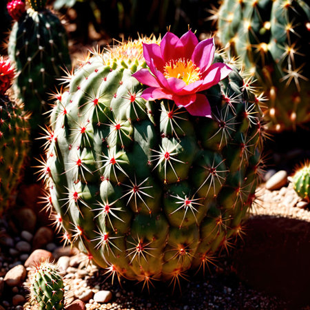 cactus in full bloom, with bright pink flowers, created with generative ai