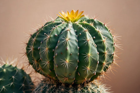 AI Generated. Close-up of a green cactus with spines and shallow roots