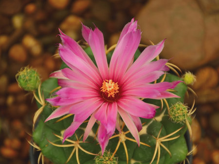 Melocactus, cactus in garden has a brown stone around, Cacti, Cactaceae, Succulent, Tree, Drought tolerant plant.