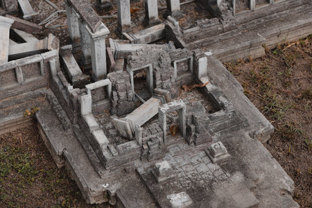 Explore the haunting beauty of ancient stone ruins enveloped in fog. The misty landscape creates an atmosphere of mystery and tranquility.