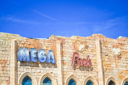 Mallorca, Spain - March 27 2018: The famous Mega Park club facade in summer