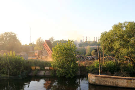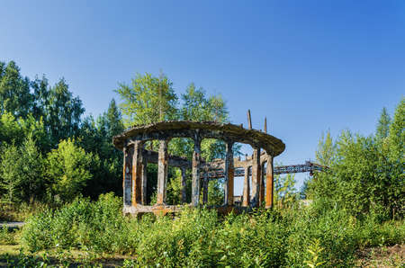 NIZHNY TAGIL, RUSSIA - AUGUST 21, 2016: Ruins of a water towery. Museum of mining production equipment. Russia, Ural, Nizhny Tagil
