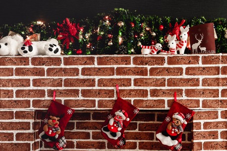 Christmas living room interior with Christmas tree and fireplace. Holiday concept.