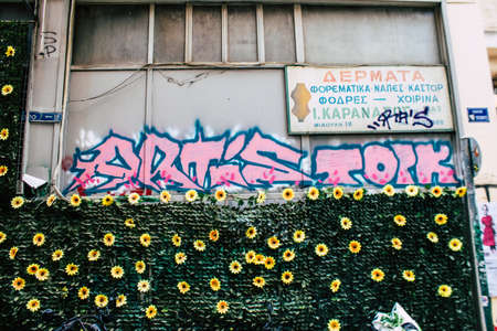 Athens, Greece - November 22, 2021 Street art in Athens, graffiti that covers the whole city, where every alley, shop front, brick wallis an artistic canvas, of political reference or of social satire