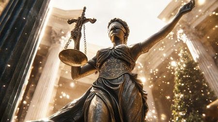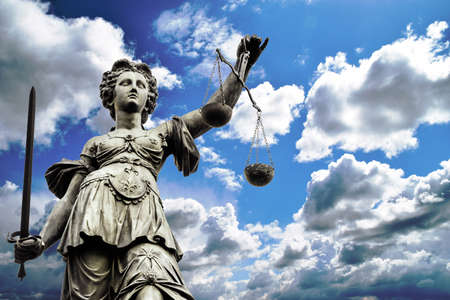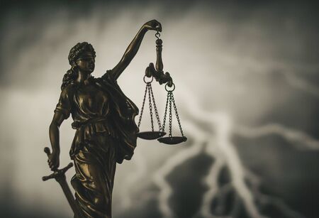 Concept illustration of the bronze statue of Lady Justice with blindfold and scales symbolizes justice and law.