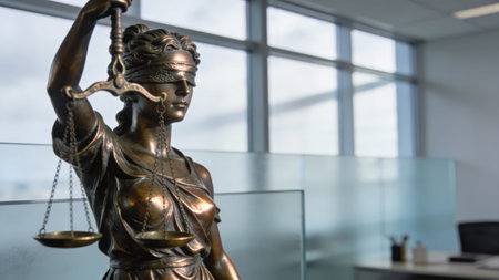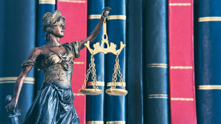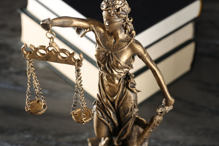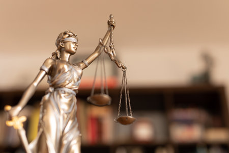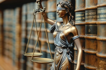 A statue of Lady Justice holding scales, with a backdrop of law books, highlighting the legal theme. lawyer