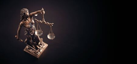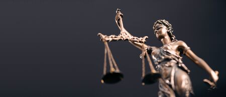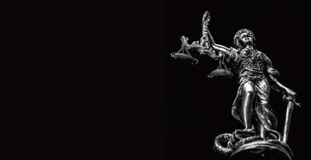 Lady Justice female statue in law on black backdrop. Law and justice concept