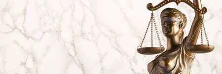 Bronze Themis statue - symbol of Justice - with a marble background