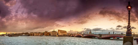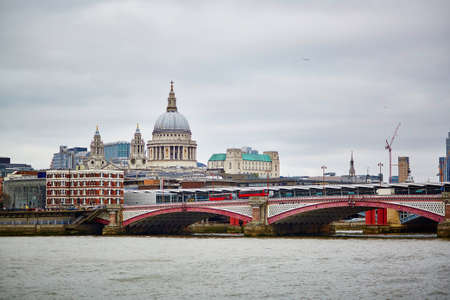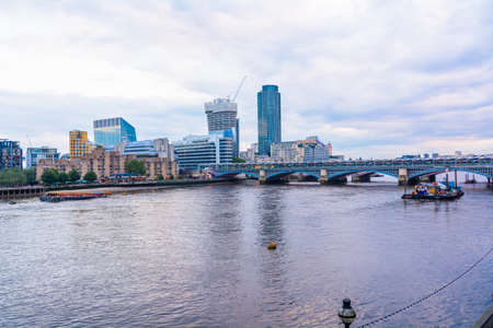 LONDON, UNITED KINGDOM - JUNE 14, 2016: Cityscape of London and Blackfriars Bridge in a beautiful summer day, England, United Kingdom