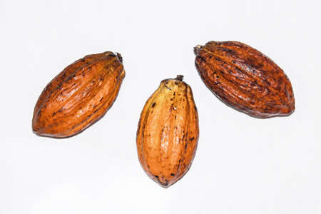 Cocoa pods on a white background.