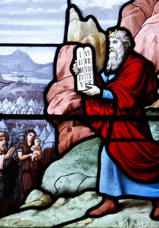 Saint Aignan church. Mose and the ten commandments. France.