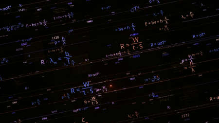Artificial intelligence AI writing abstract math and physics formulas isolated on black background. Animation. Concept of studies and technologies, seamless loop.
