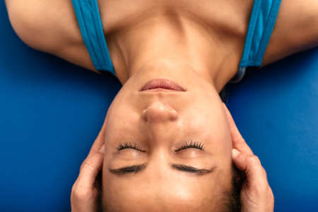 Bowen therapy of a teen girl. The terapist giving bowen treatment for her head