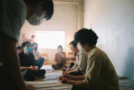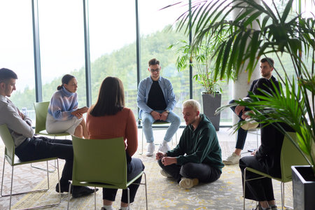 Professional therapists conduct an open group session and a comforting smile, emphasizing the importance of mental health and counseling. Generative ai