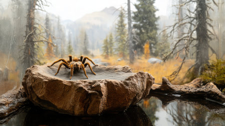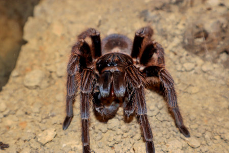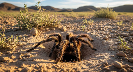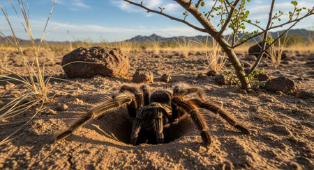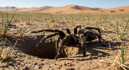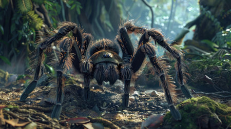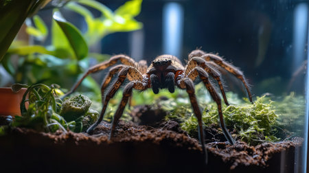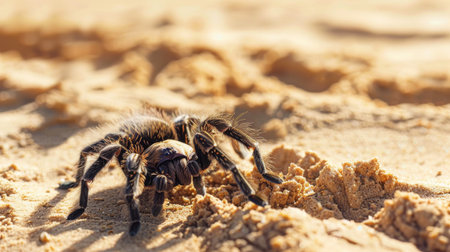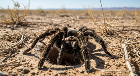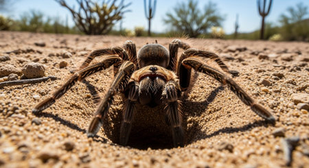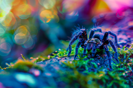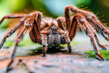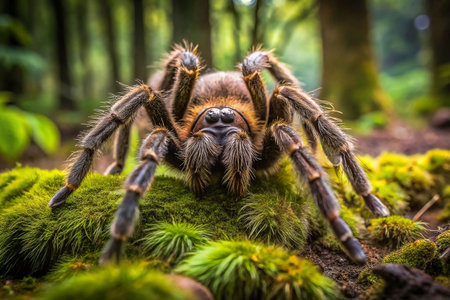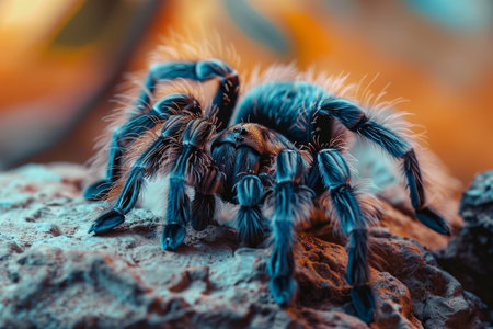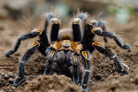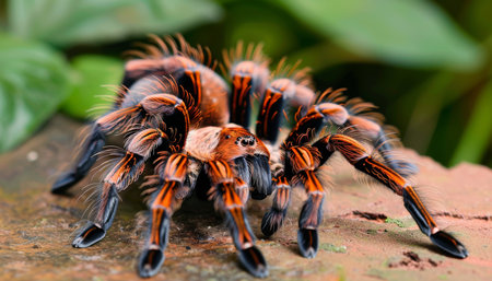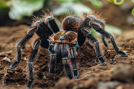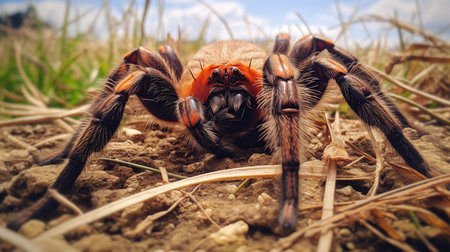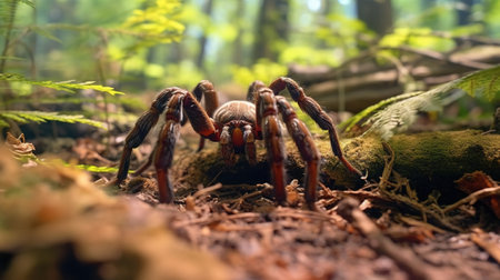 Detailed macro shot of a tarantula in its natural habitat, showcasing intricate spider details