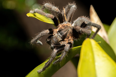Close up macro photography of a tarantula in its natural habitat revealing intricate spider features