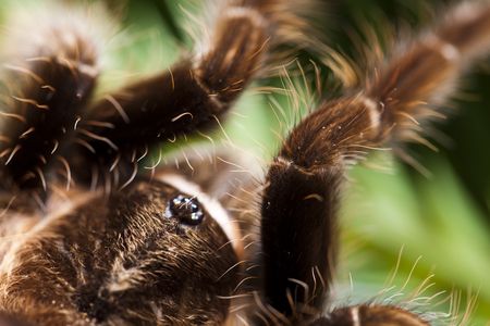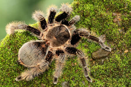 Detailed macro close up of a tarantula in its natural habitat, showcasing intricate spider details