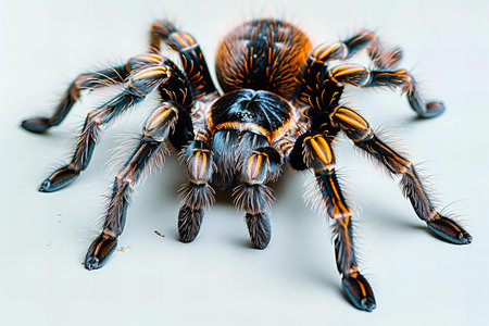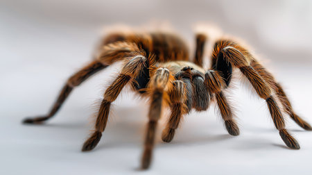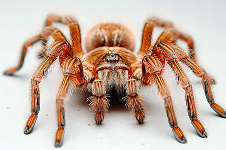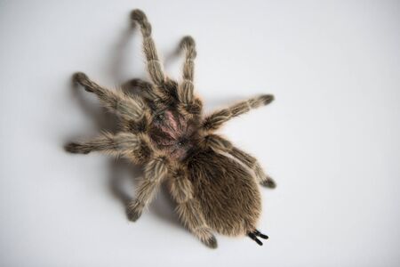 Hairy tarantula on white background, detailed and closeup, focus on texture